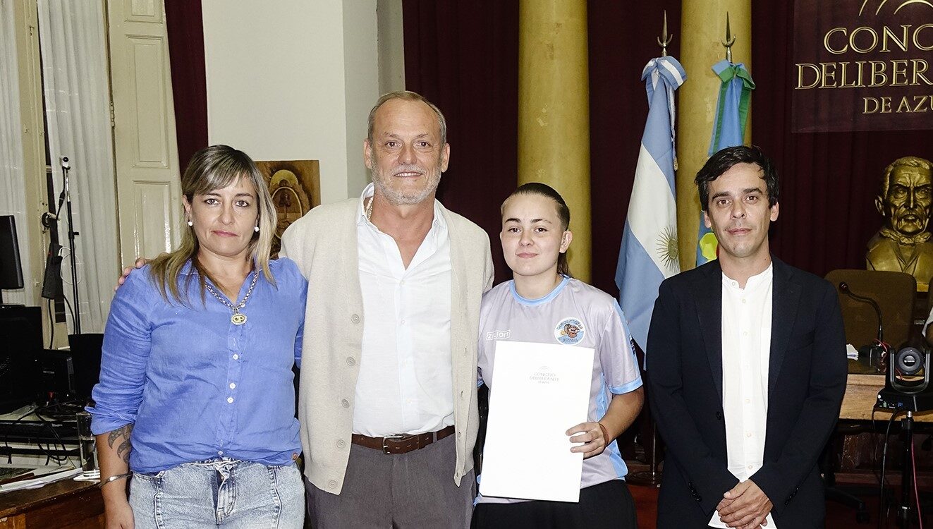 La entrega de la distinción estuvo a cargo del Vicepresidente Primero, Agustín Puyou y el Concejal Leopoldo Marchisio.